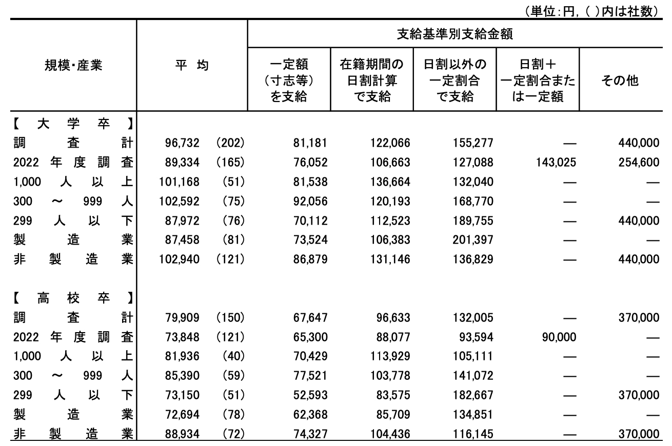 平均支給額は大学卒9万6,732円、高校卒7万9,909円