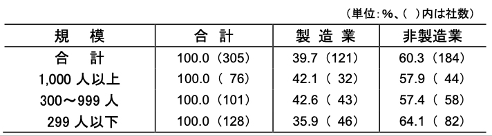 【回答状況】締切日までに回答のあった305社について集計。集計企業の内訳は別表を参照。