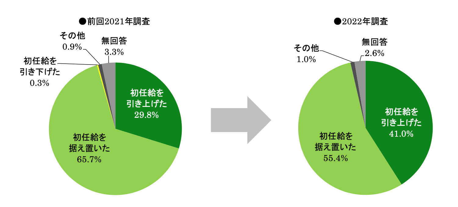 2022年4月入社者の初任給を「据え置いた」企業が増加