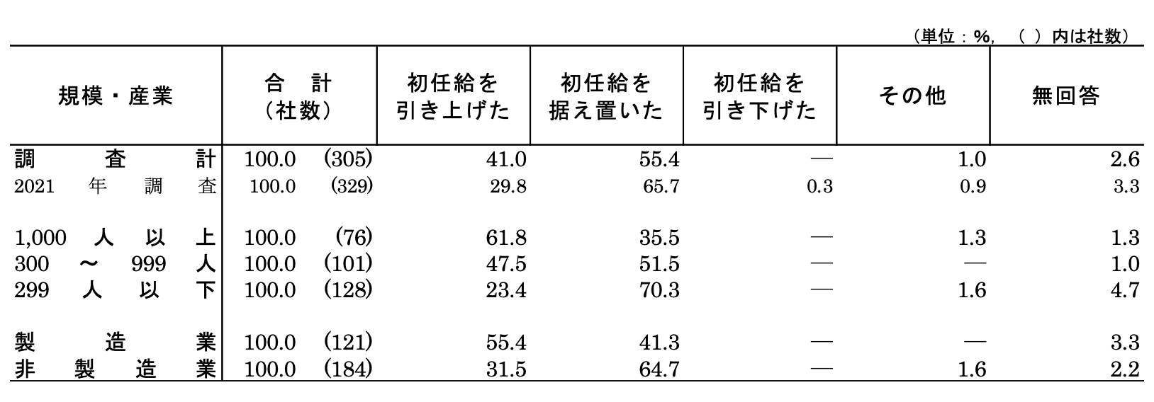 ・初任給を引き上げた企業は1割増の41.0