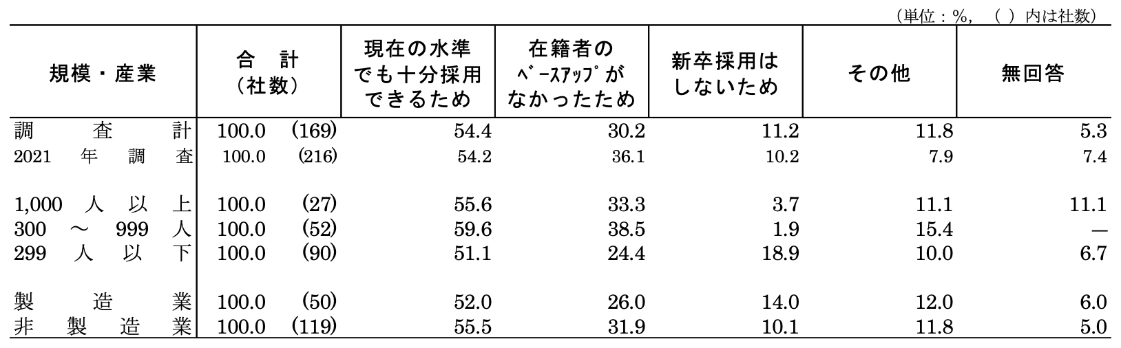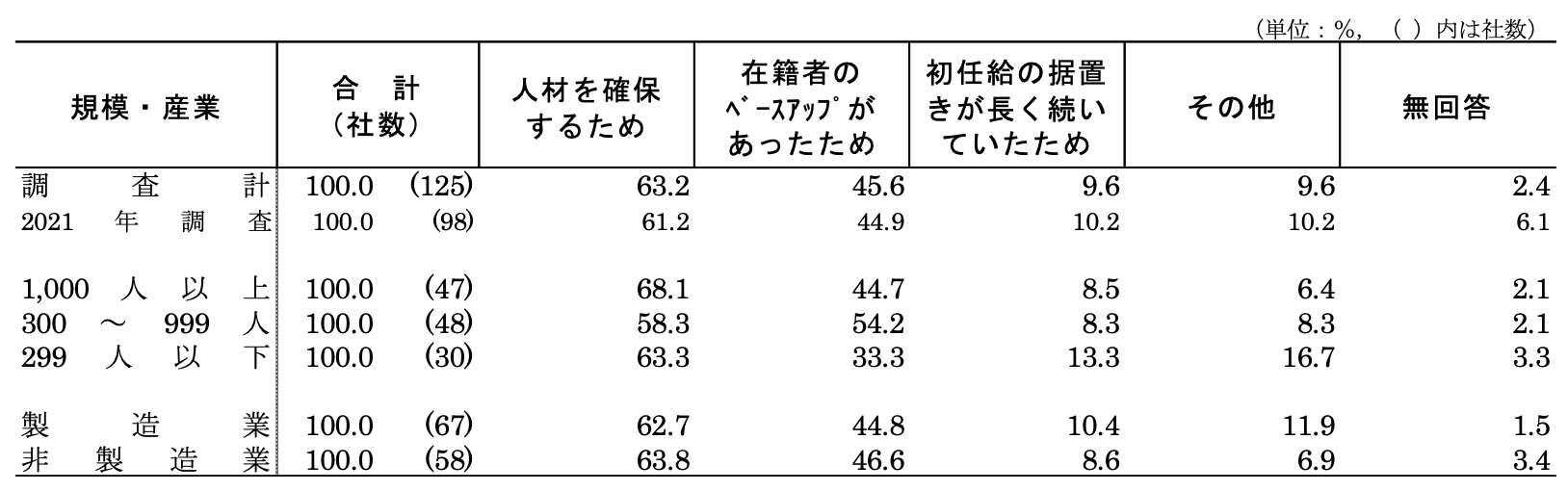 (2)初任給引上げ、据え置きの理由