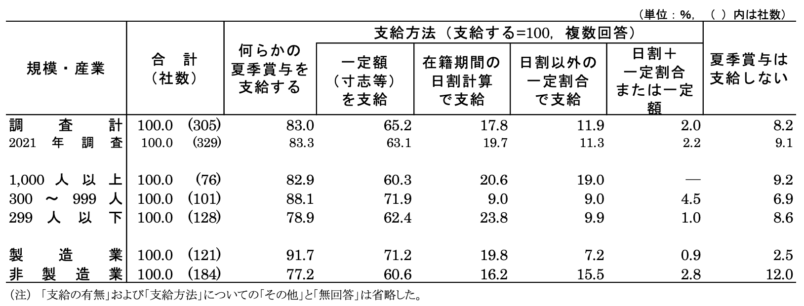 - 新入社員に対して「何らかの夏季賞与を支給する」企業は全体の8割を超え、83.0%。