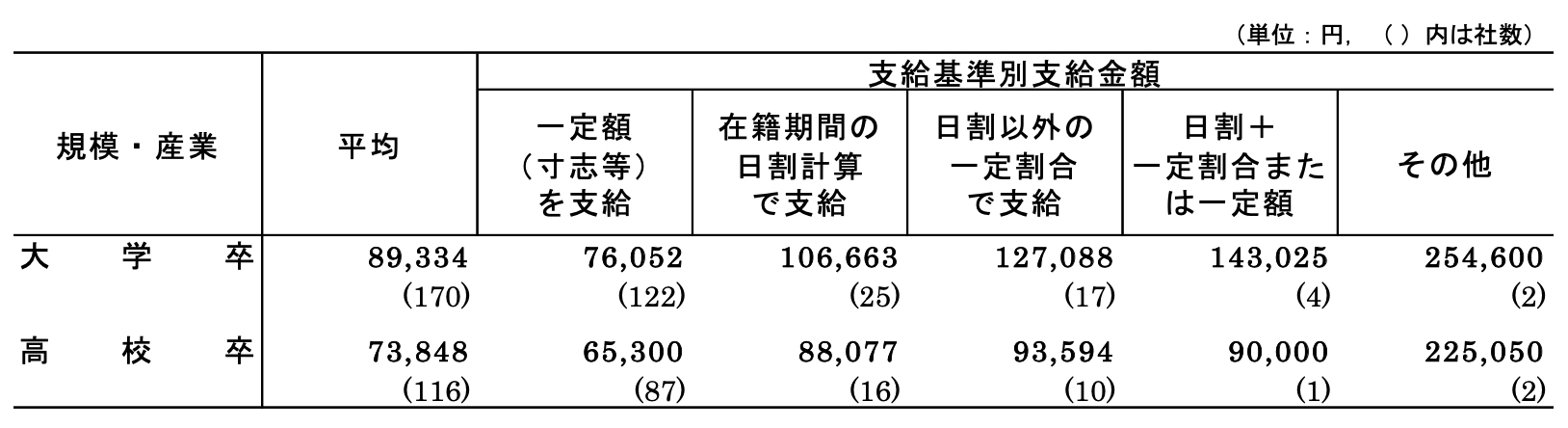 平均支給額は大学卒89,334円、高校卒73,848円