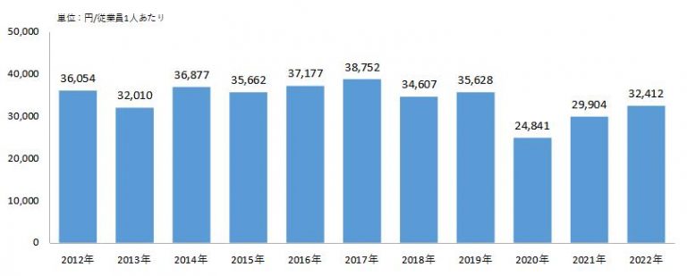 2022年度の従業員1人あたりの研修費用は32,412円