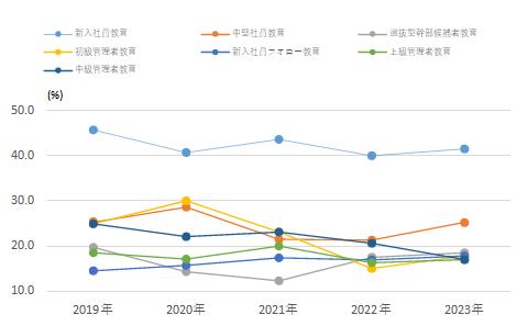 このほか、職種別・目的別教育のなかでは、「DX・デジタル教育」や「メンタルヘルス・ハラスメント教育」が高くなっていた。