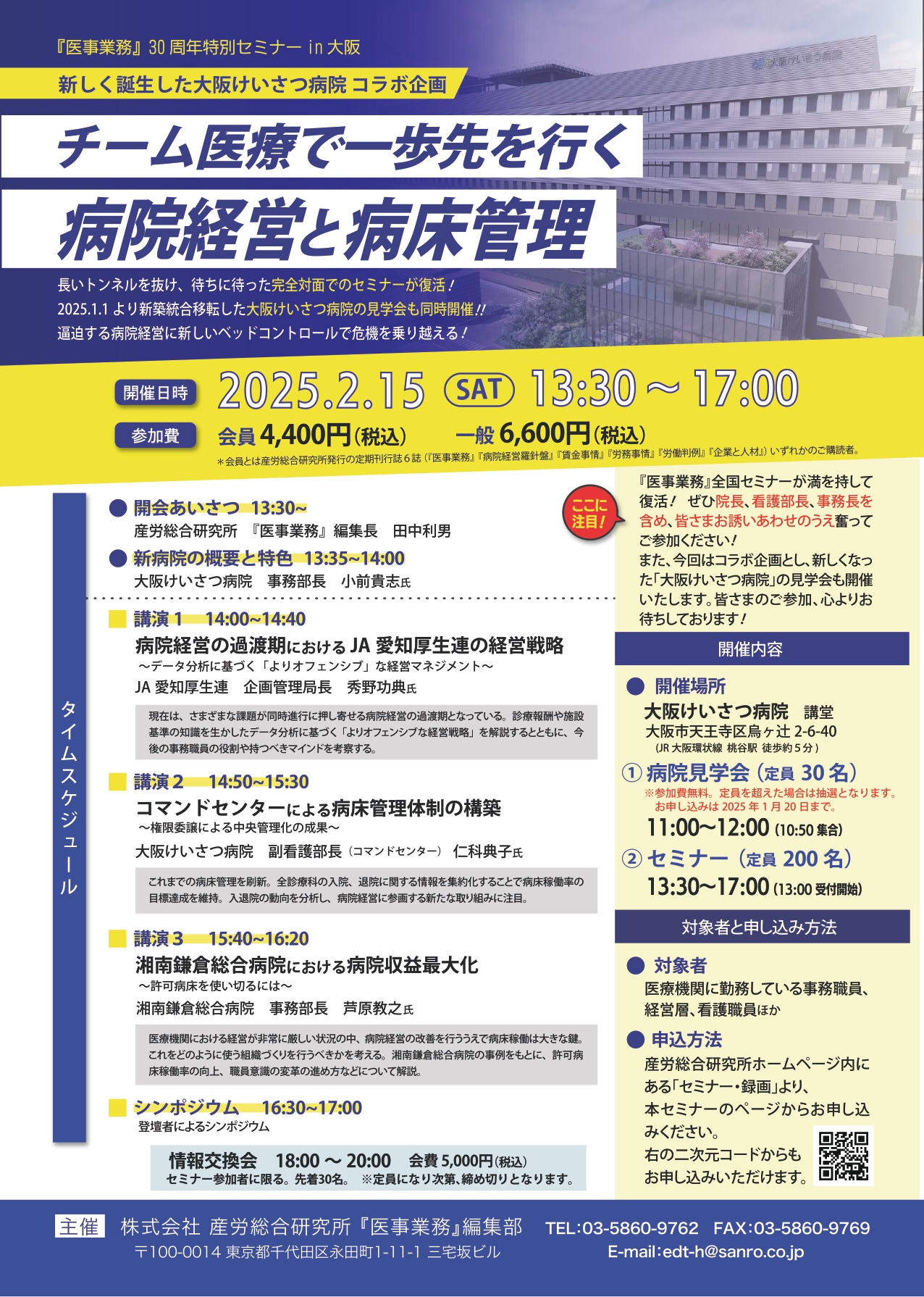 株式会社産労総合研究所 『医事業務』編集長 田中利男【新病院の概要と特色】13:35~14:00
