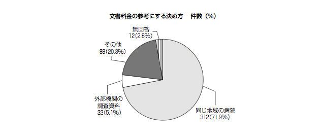 - 医療文書の料金は、約7割の医療機関が「同じ地域の病院」を参考に決めると回答