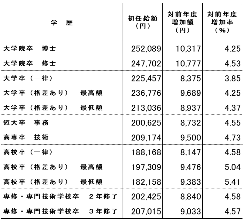 - 2024年度学歴別初任給額水準は下表のとおり。