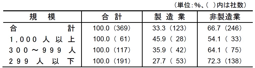 【回答状況】締切日までに回答のあった369社について集計。集計企業の内訳は別表を参照。